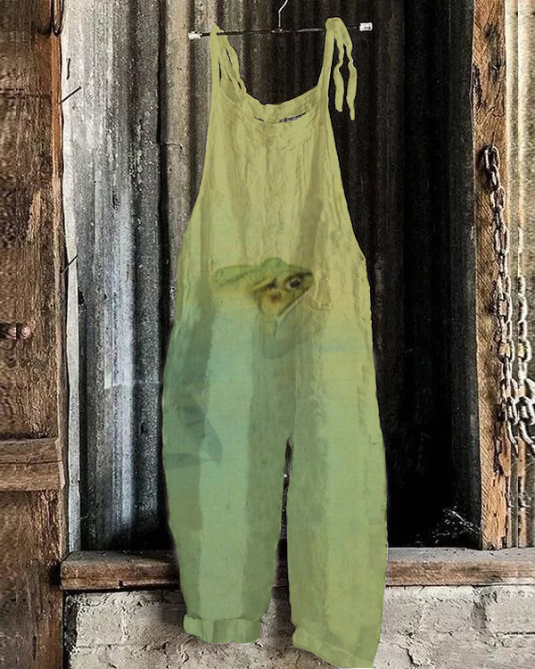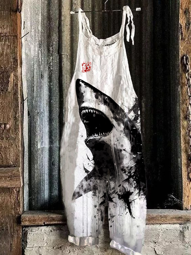 Dangerous Shark Pattern Linen Casual Jumpsuit
