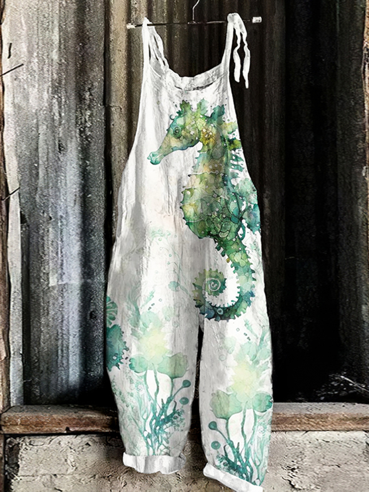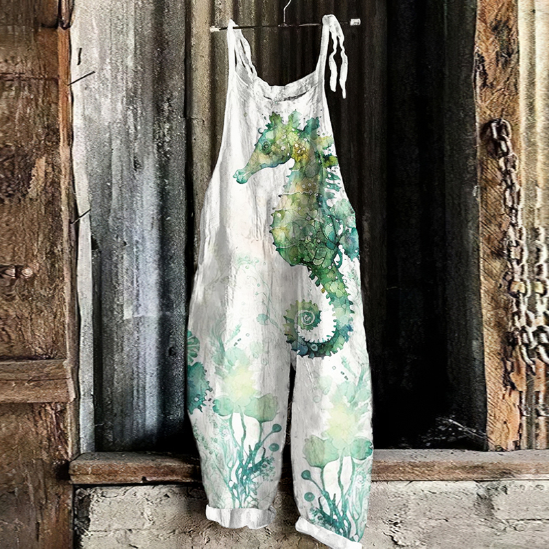 Vintage Watercolor Sea Horse Art Print Loose Jumpsuit