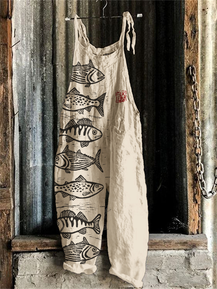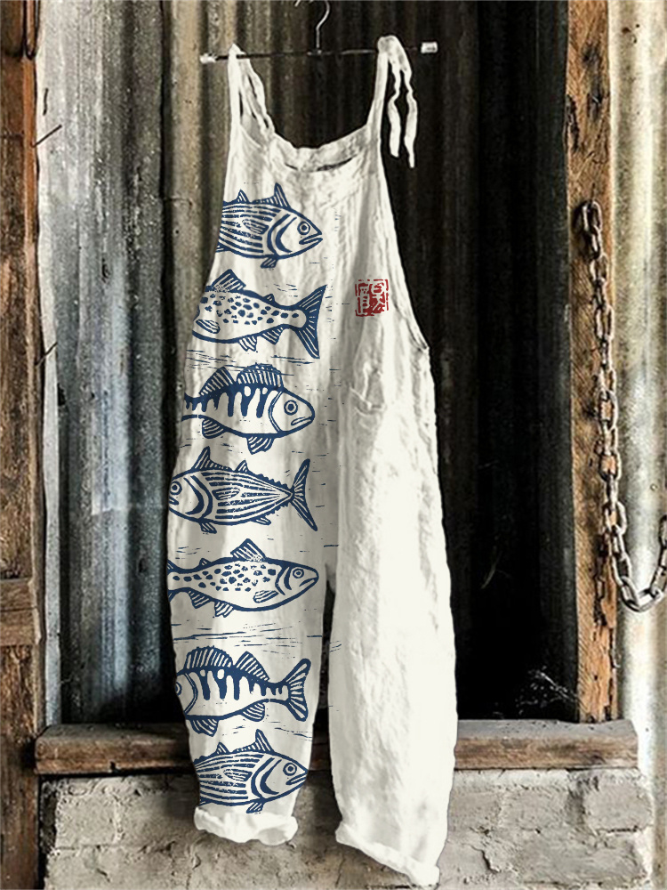 Fish Japanese Lino Art Linen Blend Jumpsuit