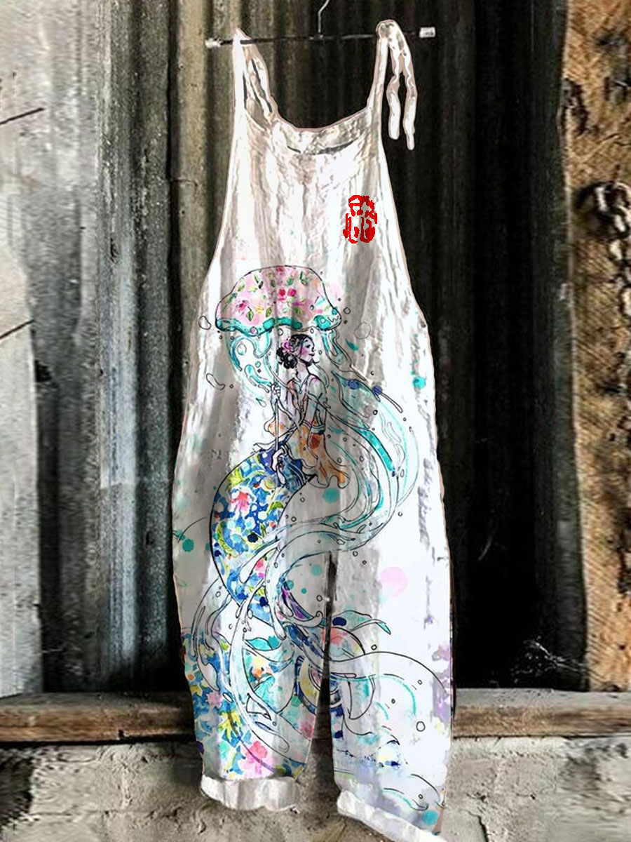 Jellyfish & Mermaid Linen Blend Loose Casual Jumpsuit