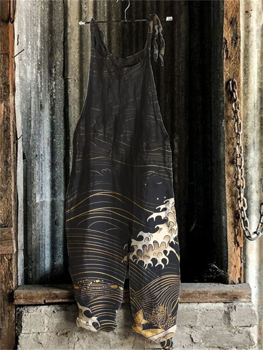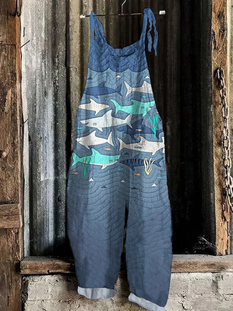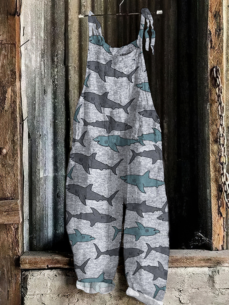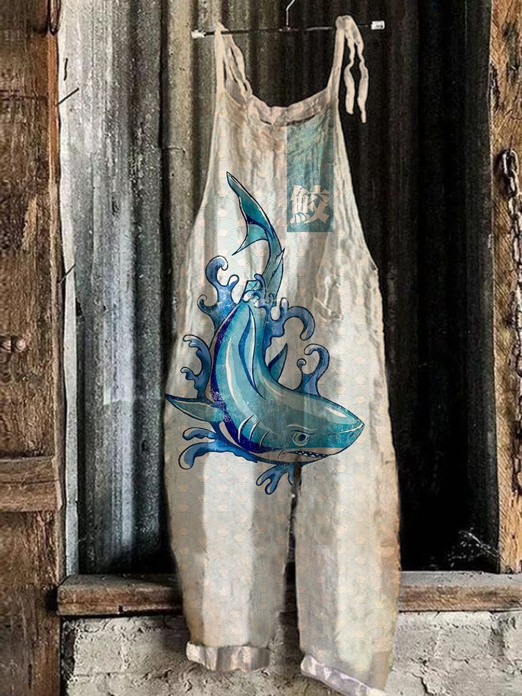 Shark Japanese Vintage Art Linen Blend Jumpsuit