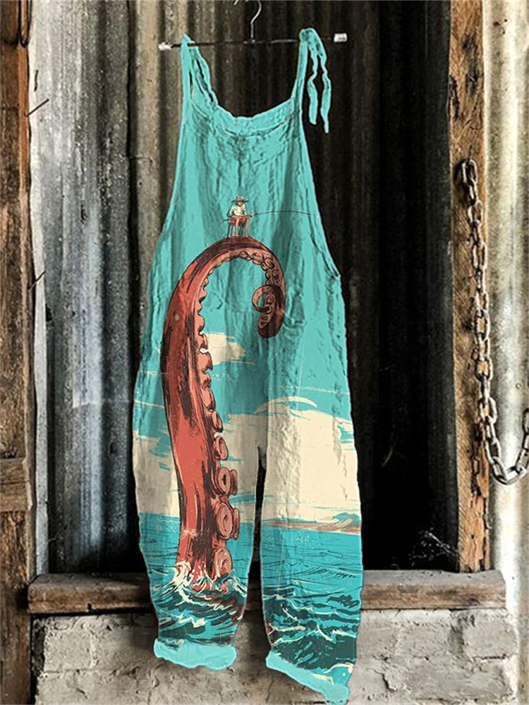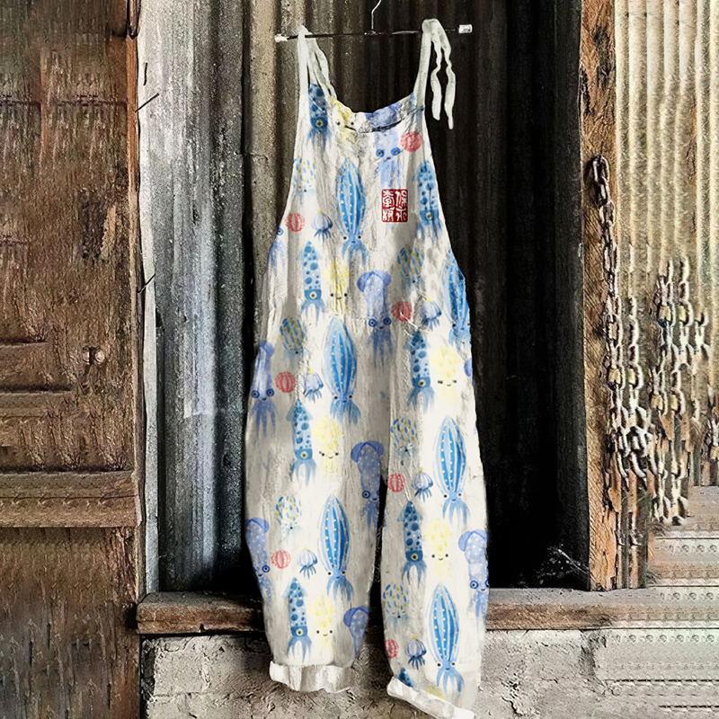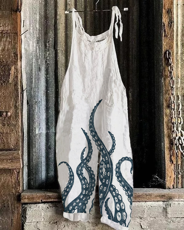 Octopus Japanese Lino Art Loose Fit Jumpsuit