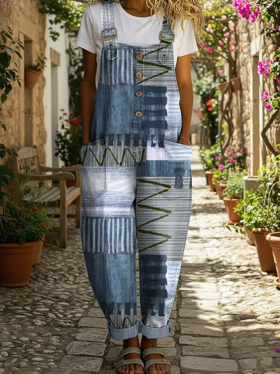 Women's Geometric Art Print Casual Denim Jumpsuit
