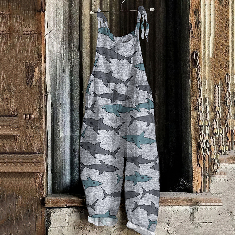 Vintage Shark Graphic Painting Art Loose Jumpsuit