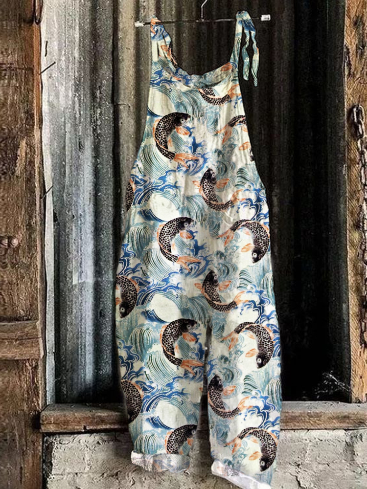 Fish Japanese Lino Art Linen Blend Jumpsuit