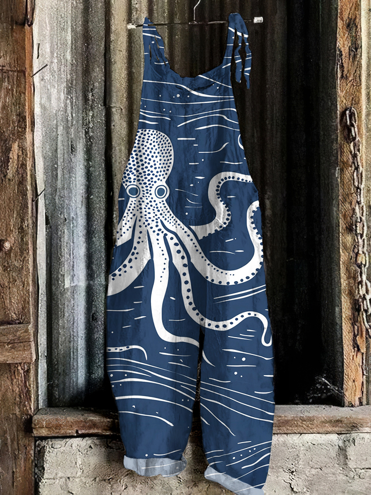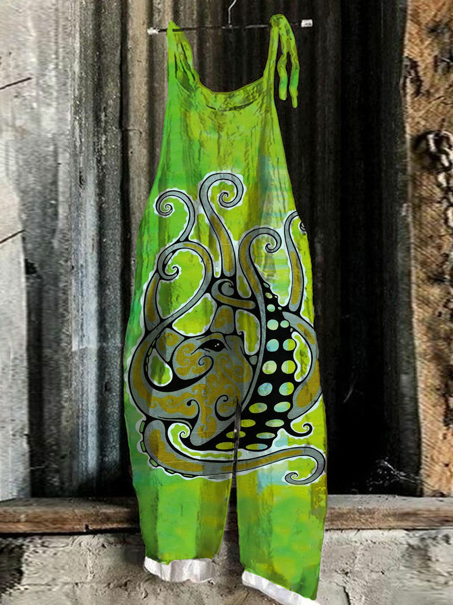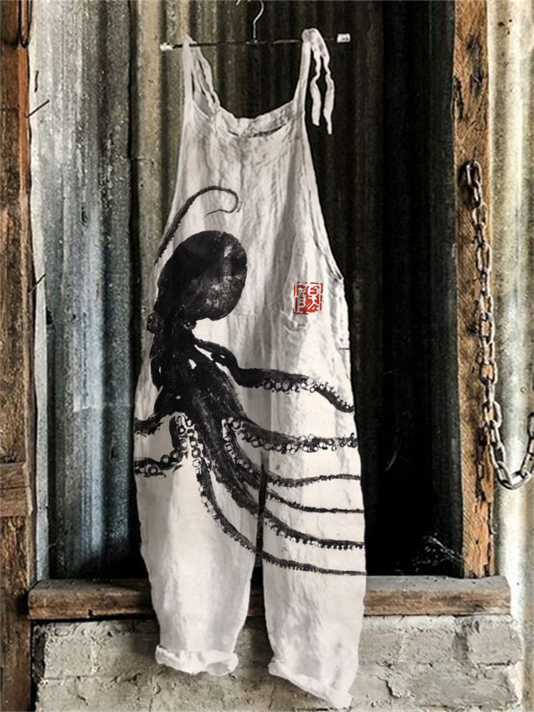Octopus Japanese Ink Art Linen Blend Casual Jumpsuit