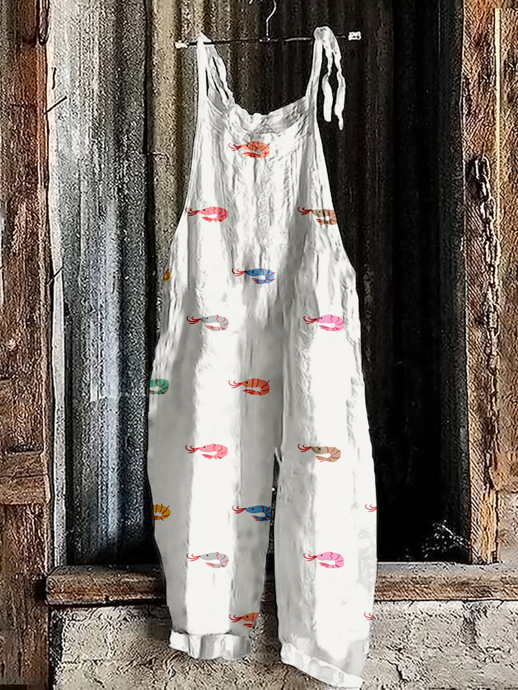 Cute Shrimp Pattern Linen Blend Loose Fit Jumpsuit
