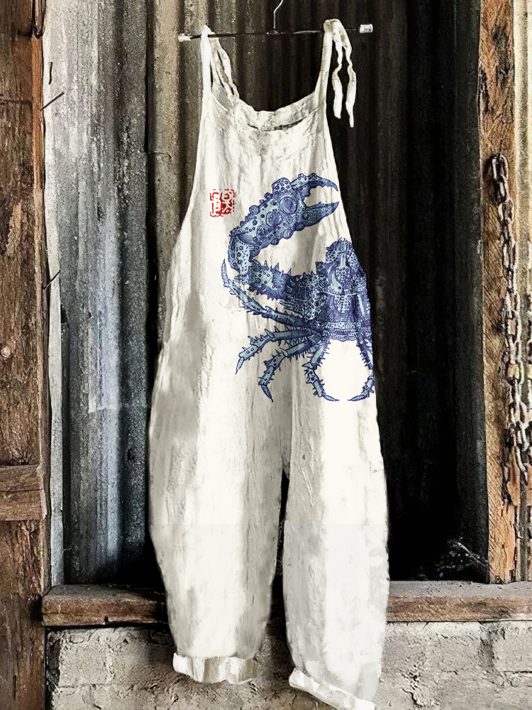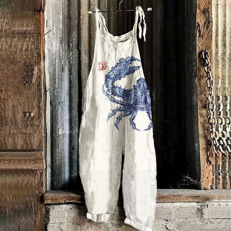 Vintage Sea Crab Art Loose Casual Jumpsuit