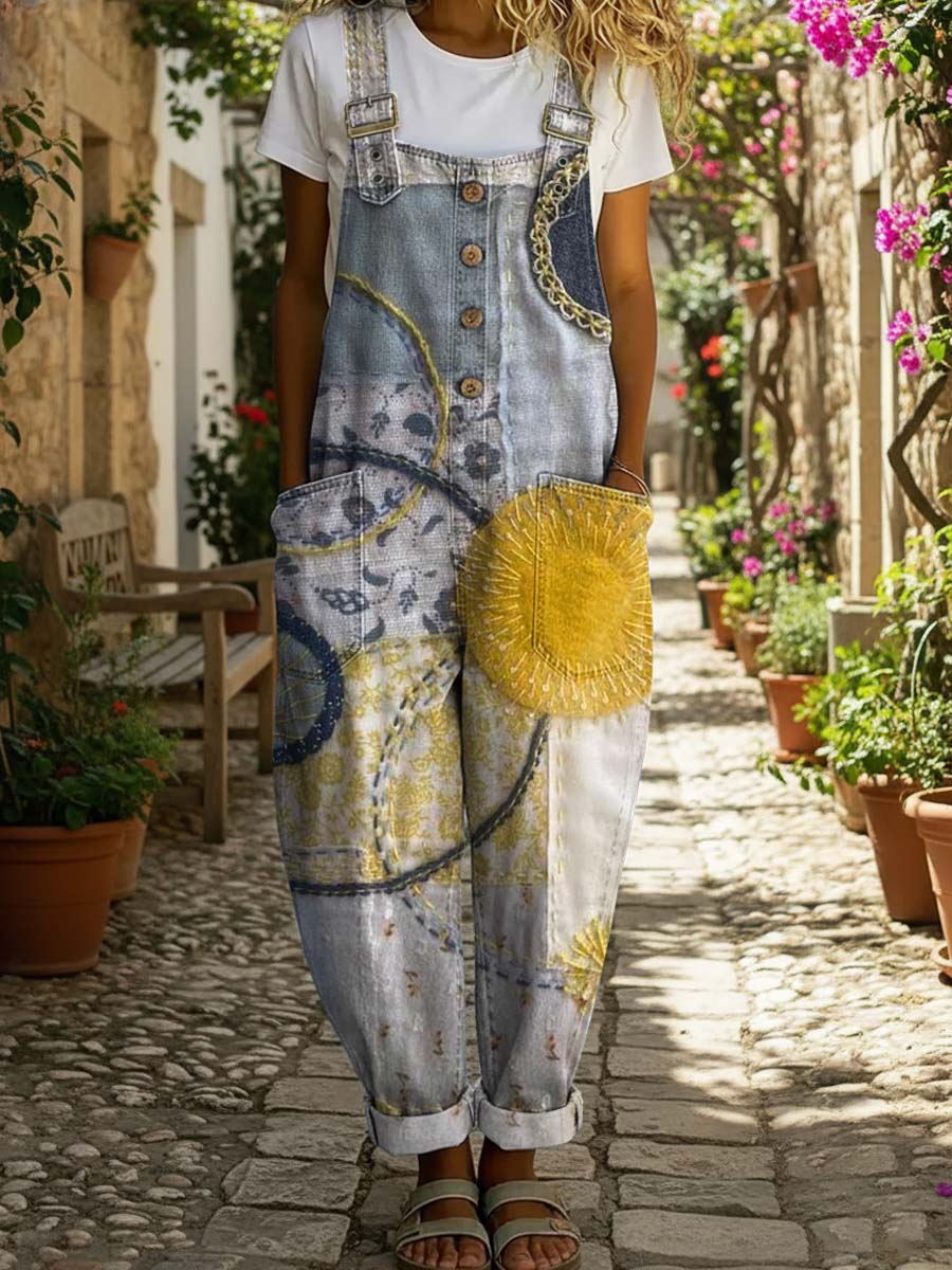 Women's Circle Art Patterns Print Casual Denim Jumpsuit