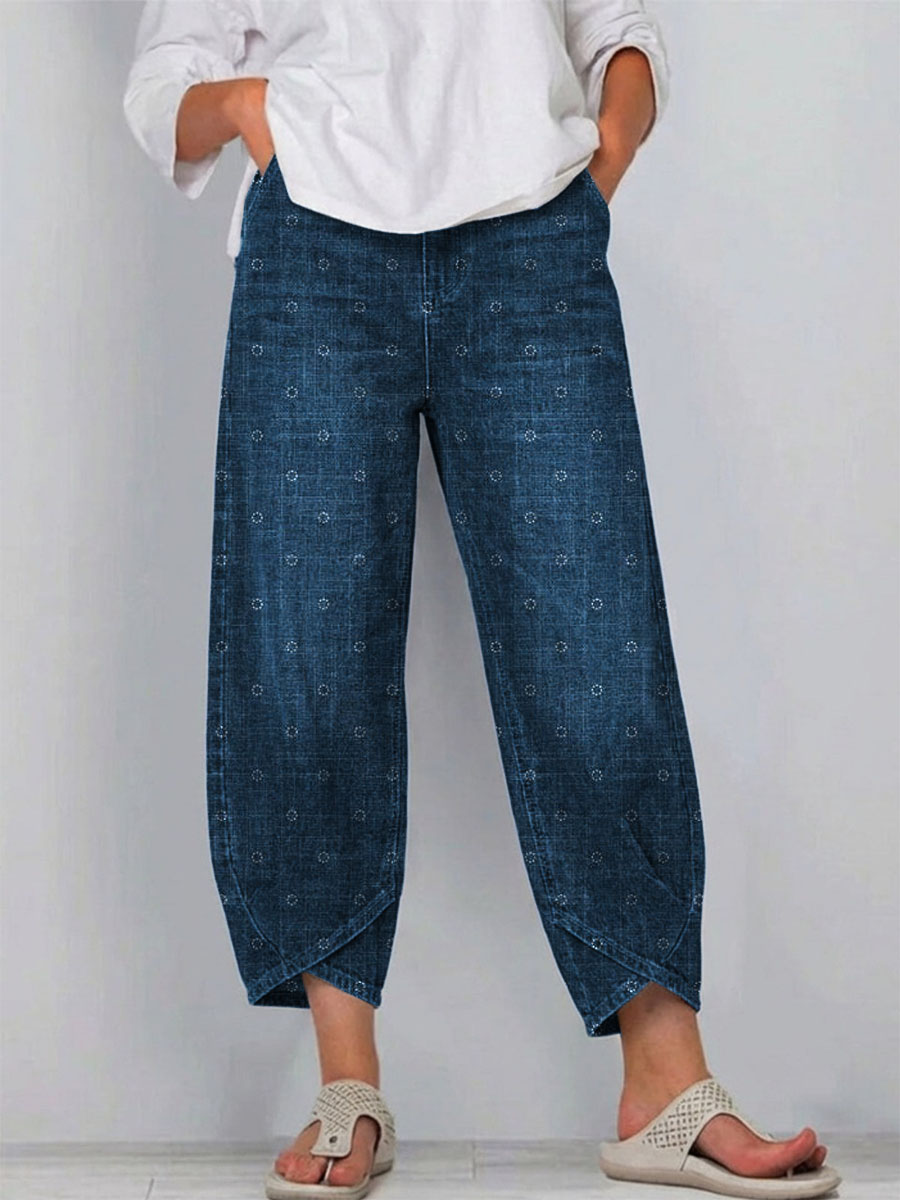 Women's Vintage Floral Pattern Art Prints Casual Denim Cotton Pants $49.99