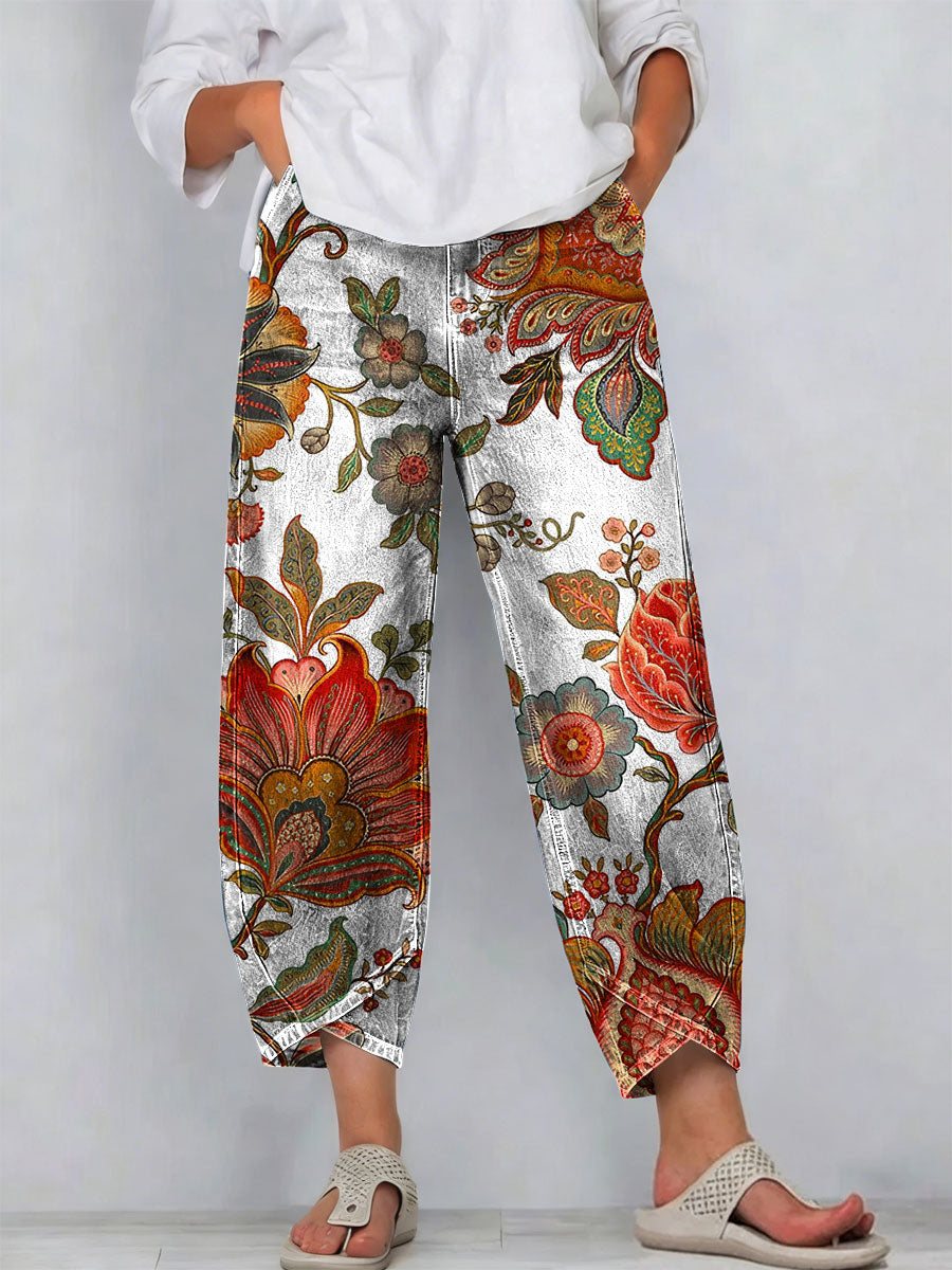 Women's Vintage Flowers Floral Patterns Art Prints Casual Denim Cotton Pants