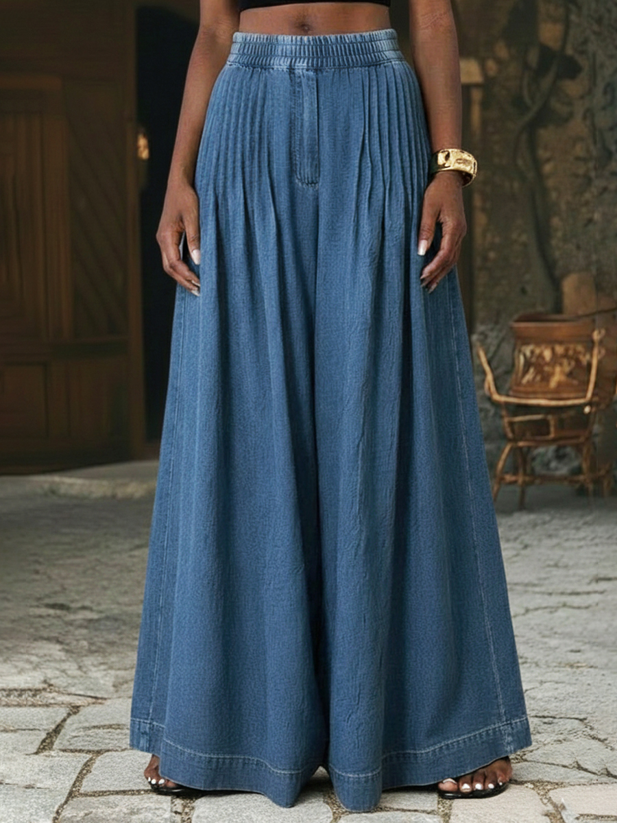 Retro Pleated Extra-wide Leg Denim Trousers