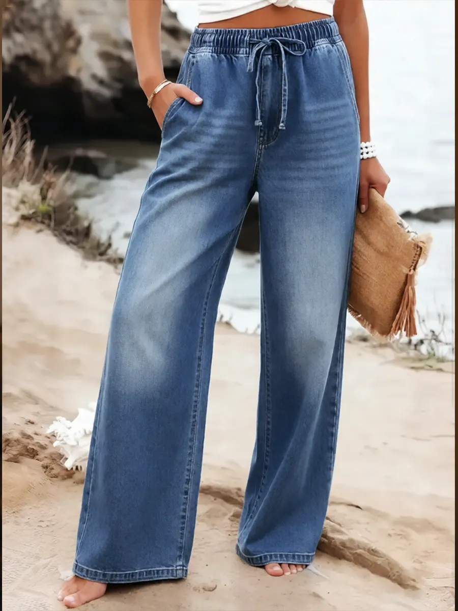 Women's Casual Elastic Waist Cotton Denim Pants