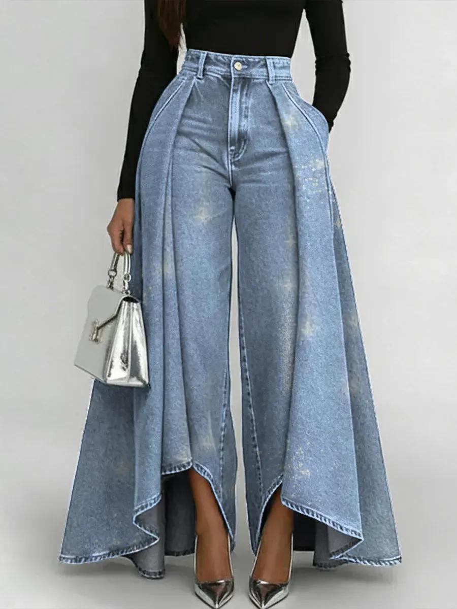 Casual Fashion Gradient Washed Denim Blue Gray Loose Pants