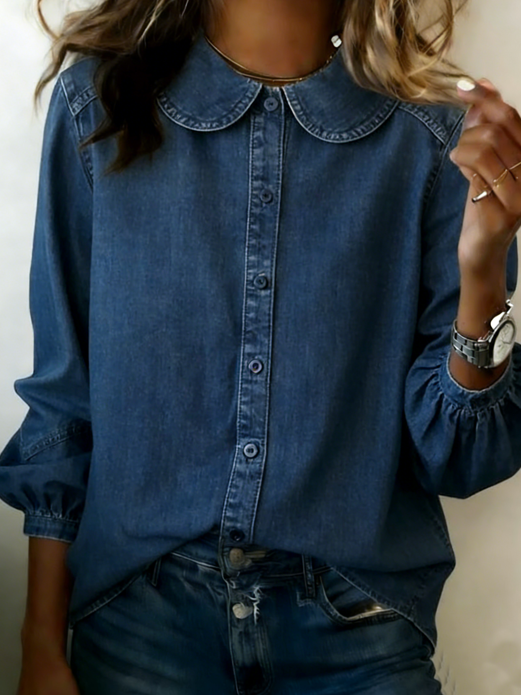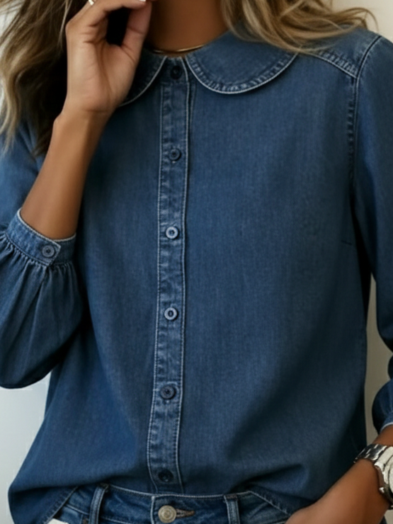Retro Peter Pan Collar Denim 100% Cotton Shirt