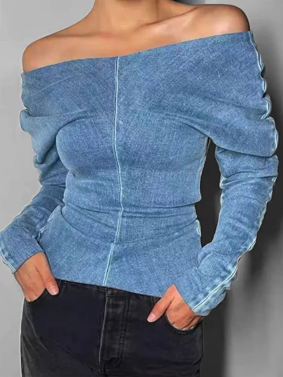 Slim-fit, Stretchy Off-the-shoulder Denim Top