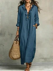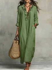 Women's Solid Color Ruffled Art Casual Fashion Cozy Cotton Linen Dress