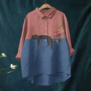 Japanese Art Cherry Blossom Print Casual Lapel Loose Blouse