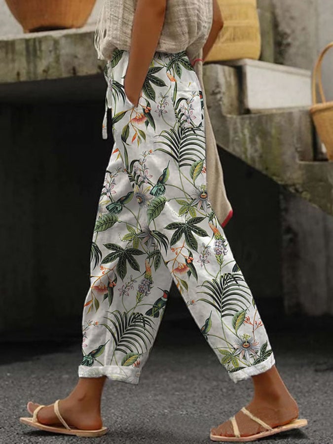 Women's Floral Design Print Lace-Up Loose With Elastic Waist Casual Pants