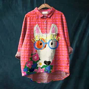 Women's Colorful Graffiti Cute Puppy Art Print Casual Lapel Blouse