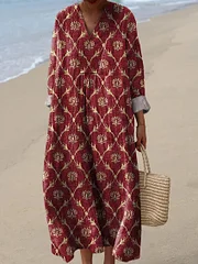 Retro Style Geometric Pattern Printed Women's Dress