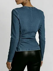 Women's Round Neck Long-sleeved Casual Slim-fit Denim Top