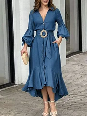 Women's V-neck Long-sleeved Casual Loose Denim Dress