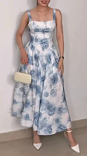 Summer women's beach dress, knee-length skirt with irregular design, featuring a square neckline and back-revealing design. GZ0925