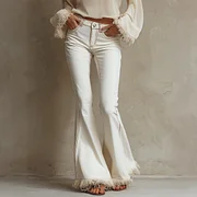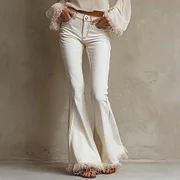 Women's Fashionable Retro-style Denim Cotton Flared Pants With Frayed Edges And Patchwork Design