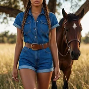 Women's Western Cowboy Style Outdoor Casual Denim Jumpsuit Trousers