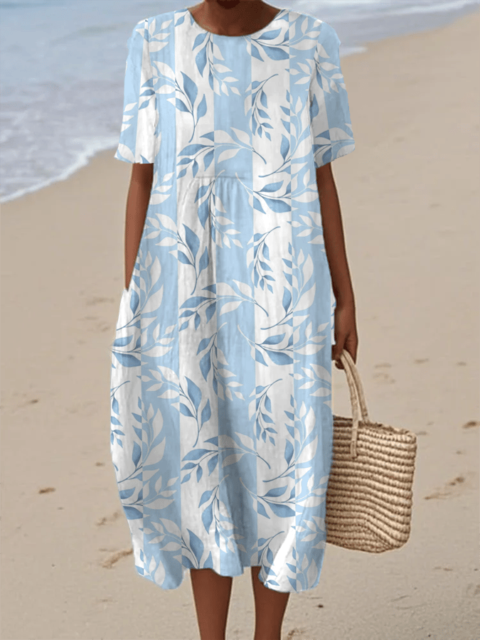 Women's Vintage Floral Print Casual Round Neck Short Sleeves Dress