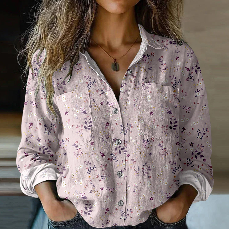 Women's Vintage Floral Art Print Casual Long Sleeve Comfortable Cotton Shirt