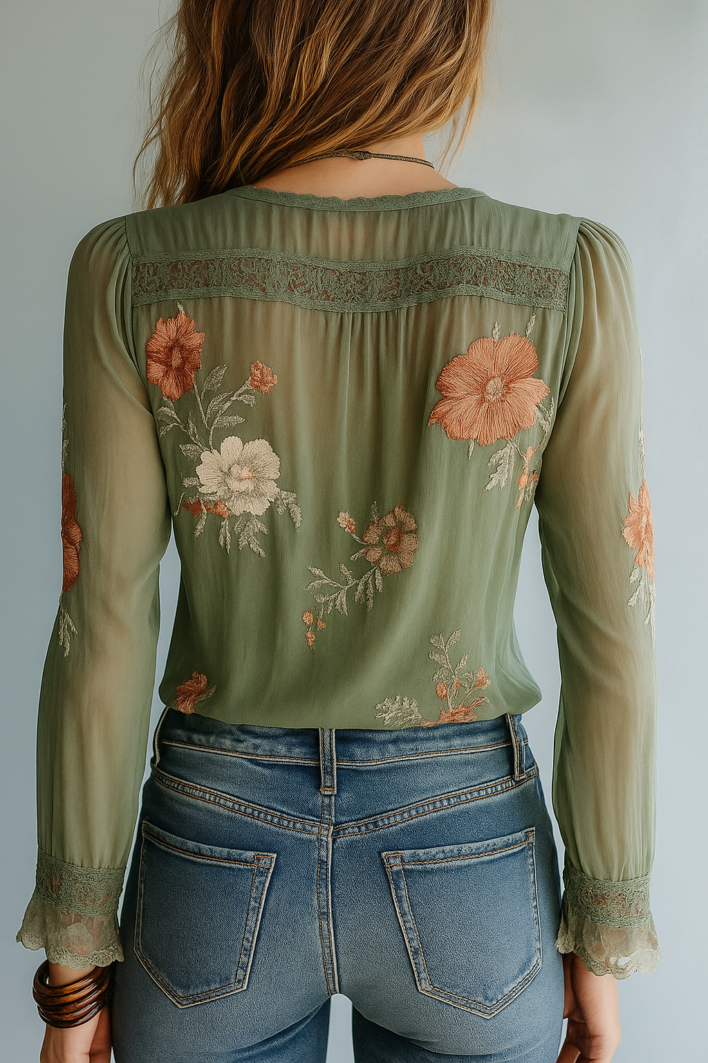Bohemian Floral Printed Lace Blouse