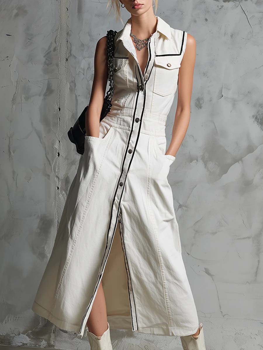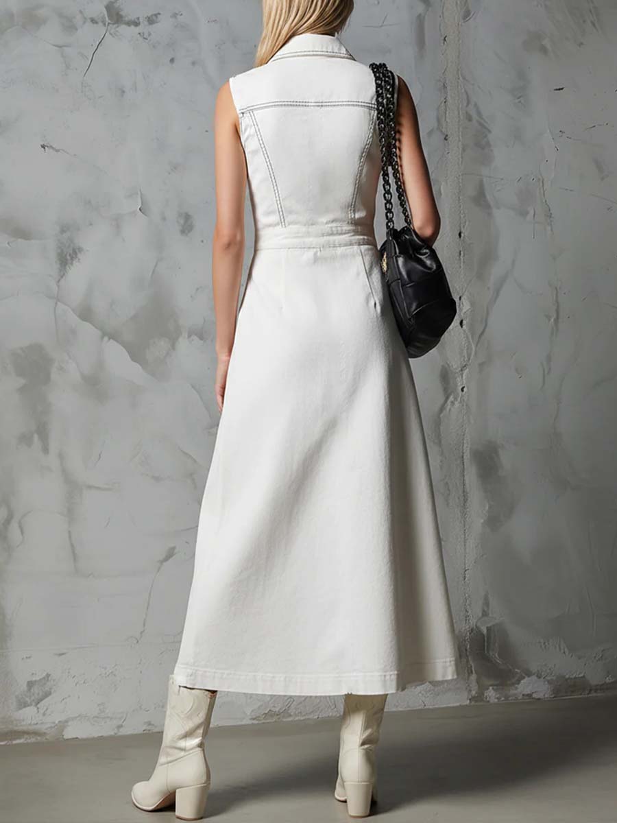 Women's Sleeveless Casual Loose Denim Dress With Lapel Collar