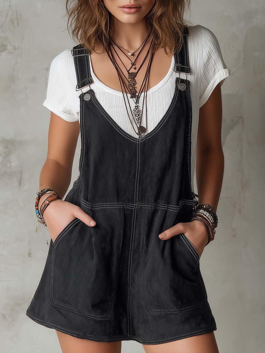 Retro Denim Suspender Mini Dress