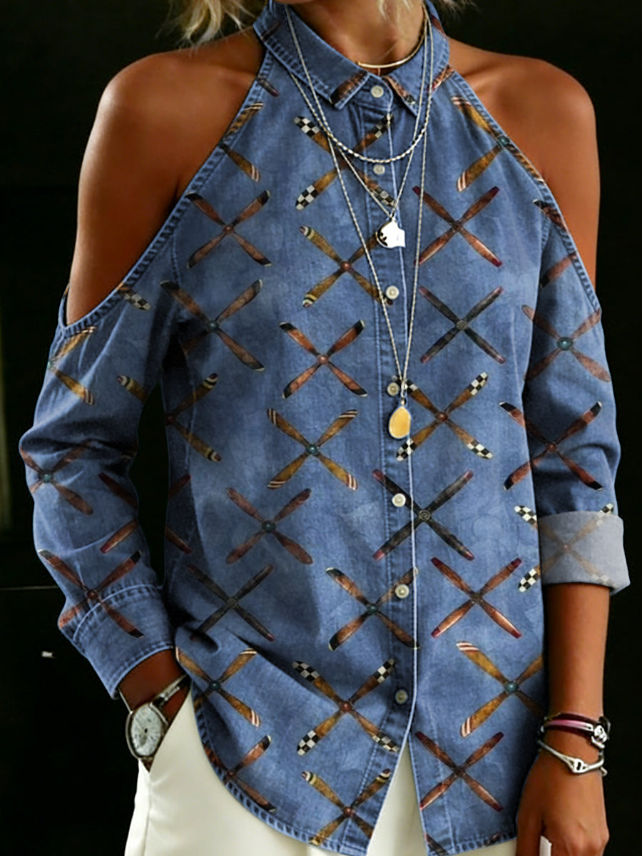 Women's Fun Geometric Decorative Patterns Casual Long Sleeve Denim Shirt