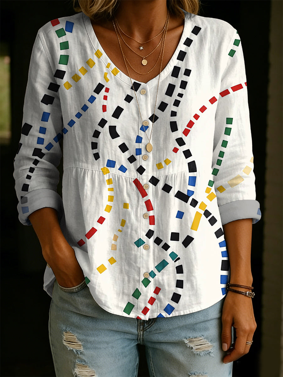 Women's Fun Colorful Geometric Dotted Line Decorative Patterns Linen And Cotton Shirt