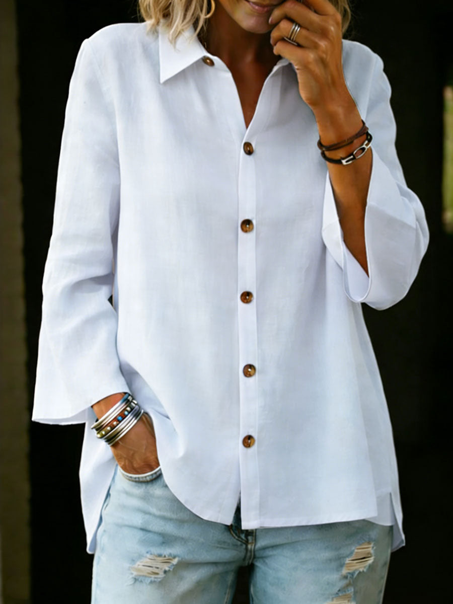 Women's Solid Color Collared Loose Casual Linen Cotton Shirt