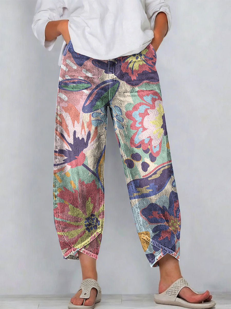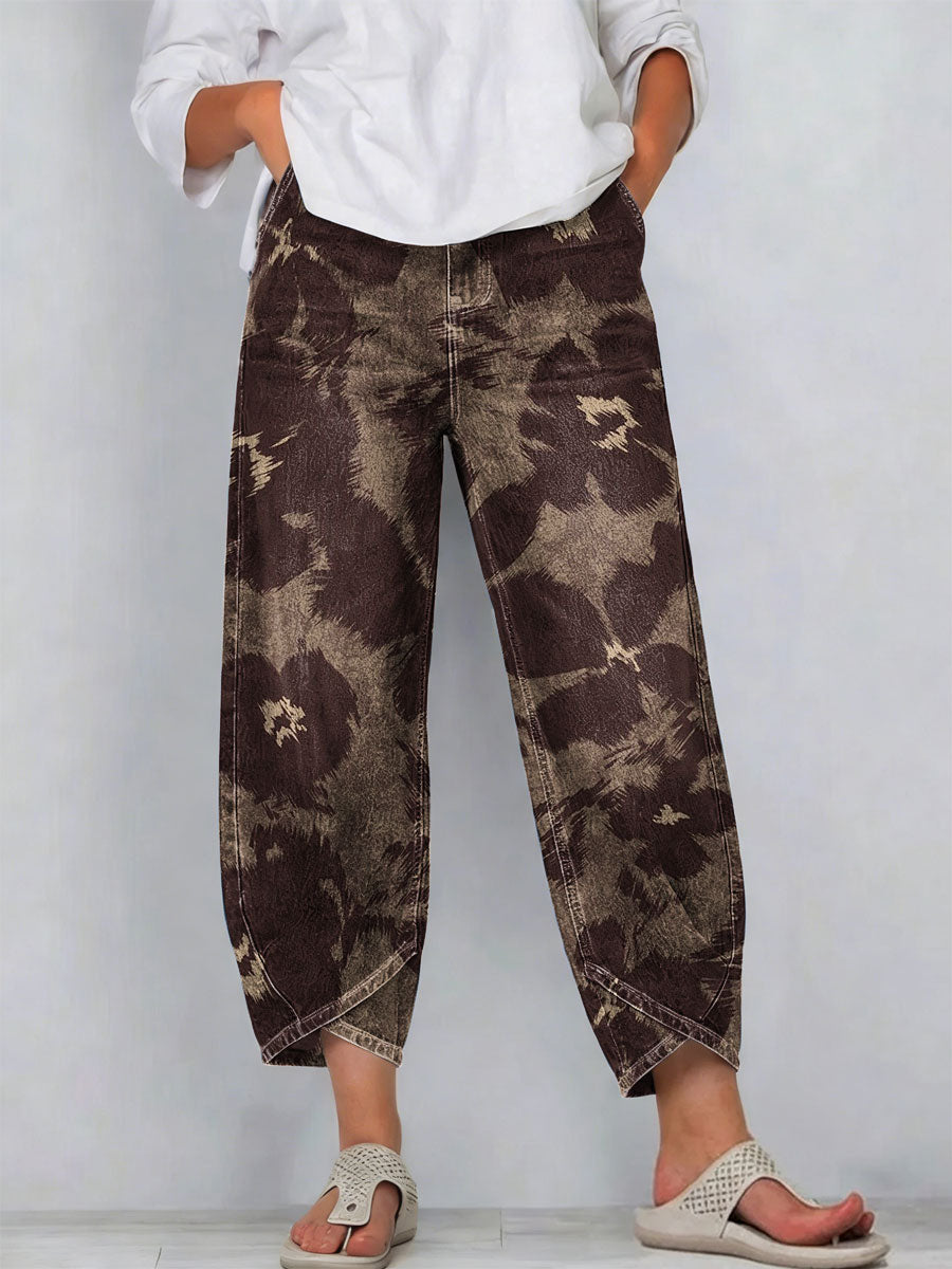 Women's Vintage Flowers Floral Patterns Art Prints Casual Denim Cotton Pants