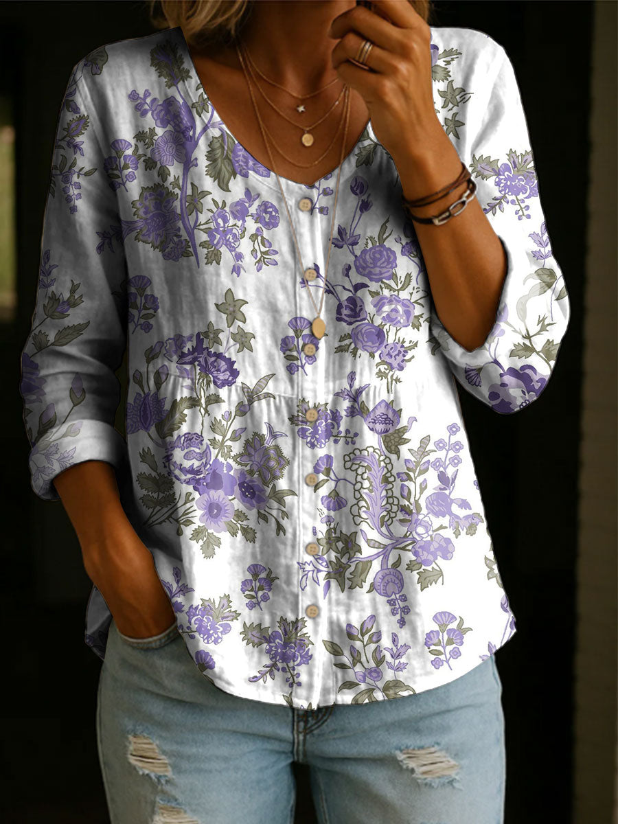 Women's Floral Pattern Art Print Casual Cotton Shirt