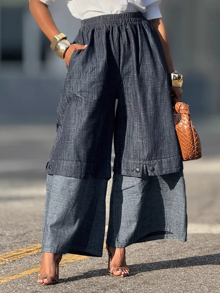 Women's Patchwork Color-blocked Wide-leg Jeans