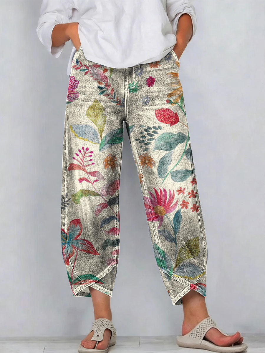 Women's Vintage Flowers Floral Patterns Art Prints Casual Denim Cotton Pants