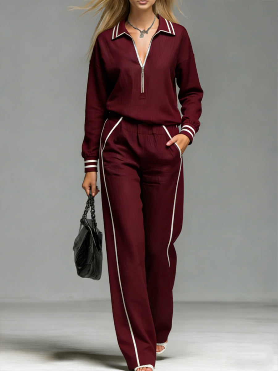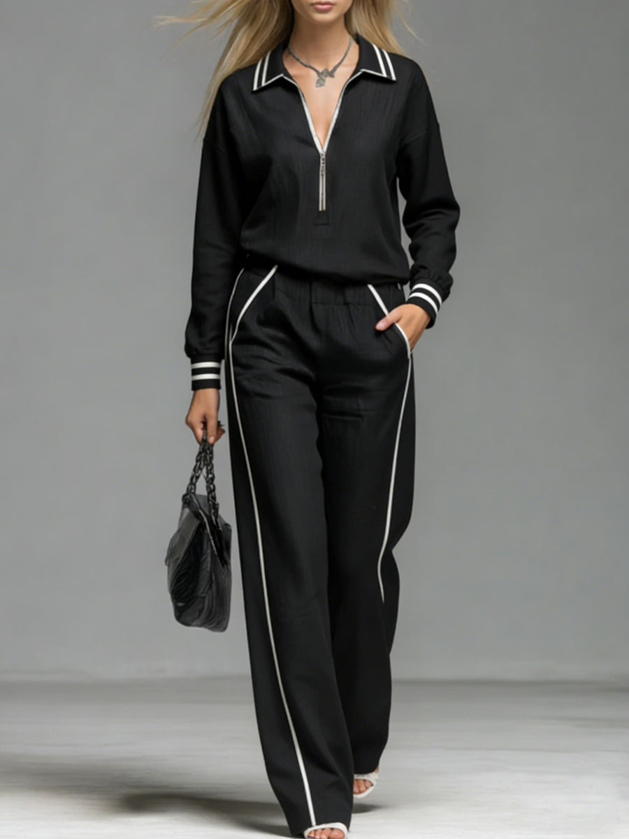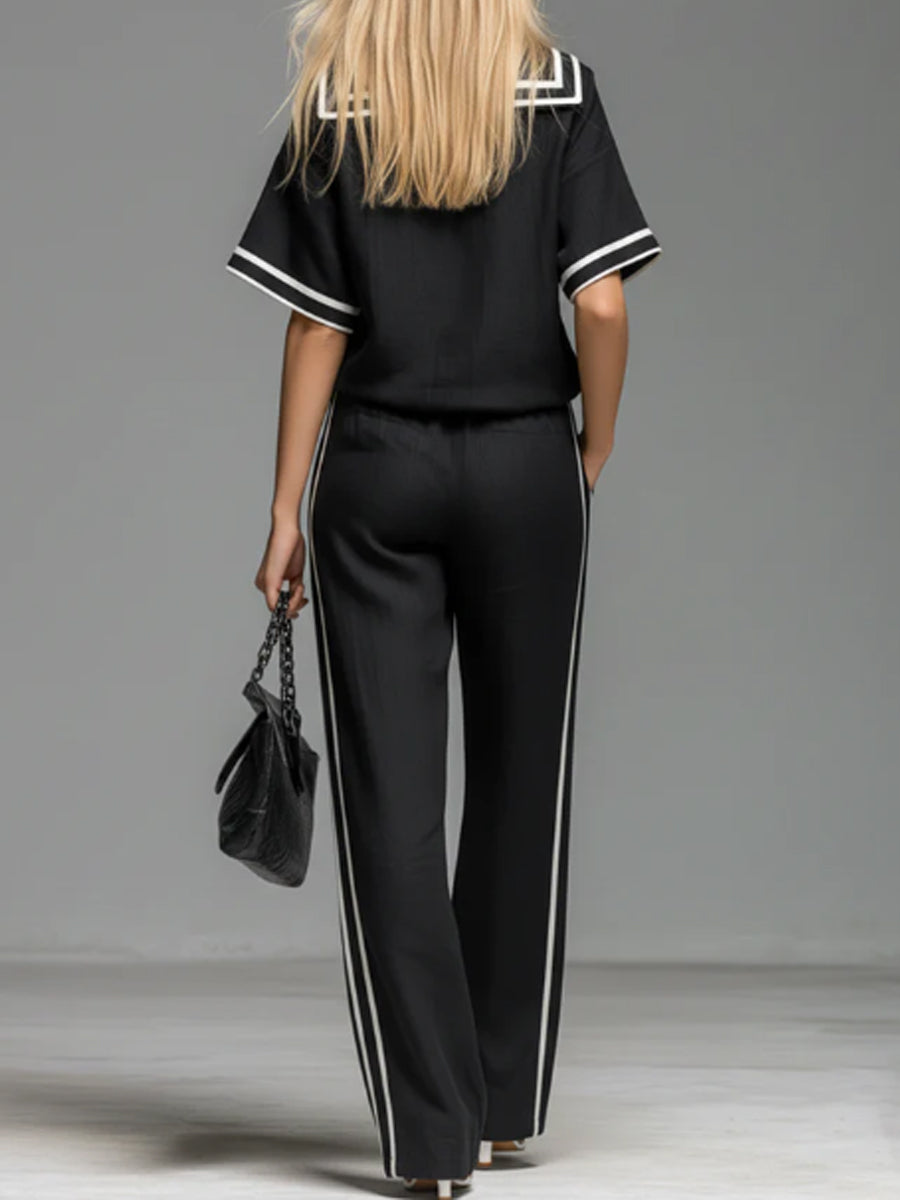 Comfortable And Casual V-neck Sleeveless Button-down Top And Trousers Set