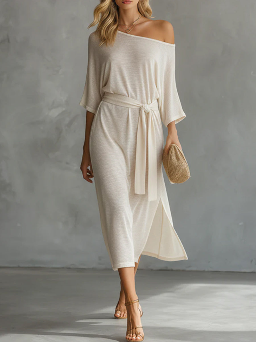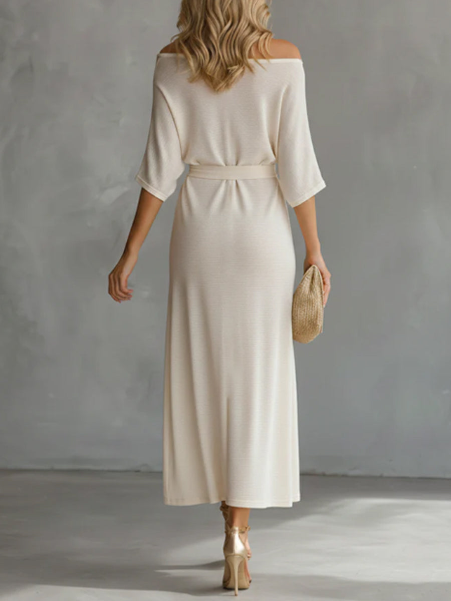 Women's Hollow-out Off-the-shoulder Long-sleeved Pullover Sweater Dress