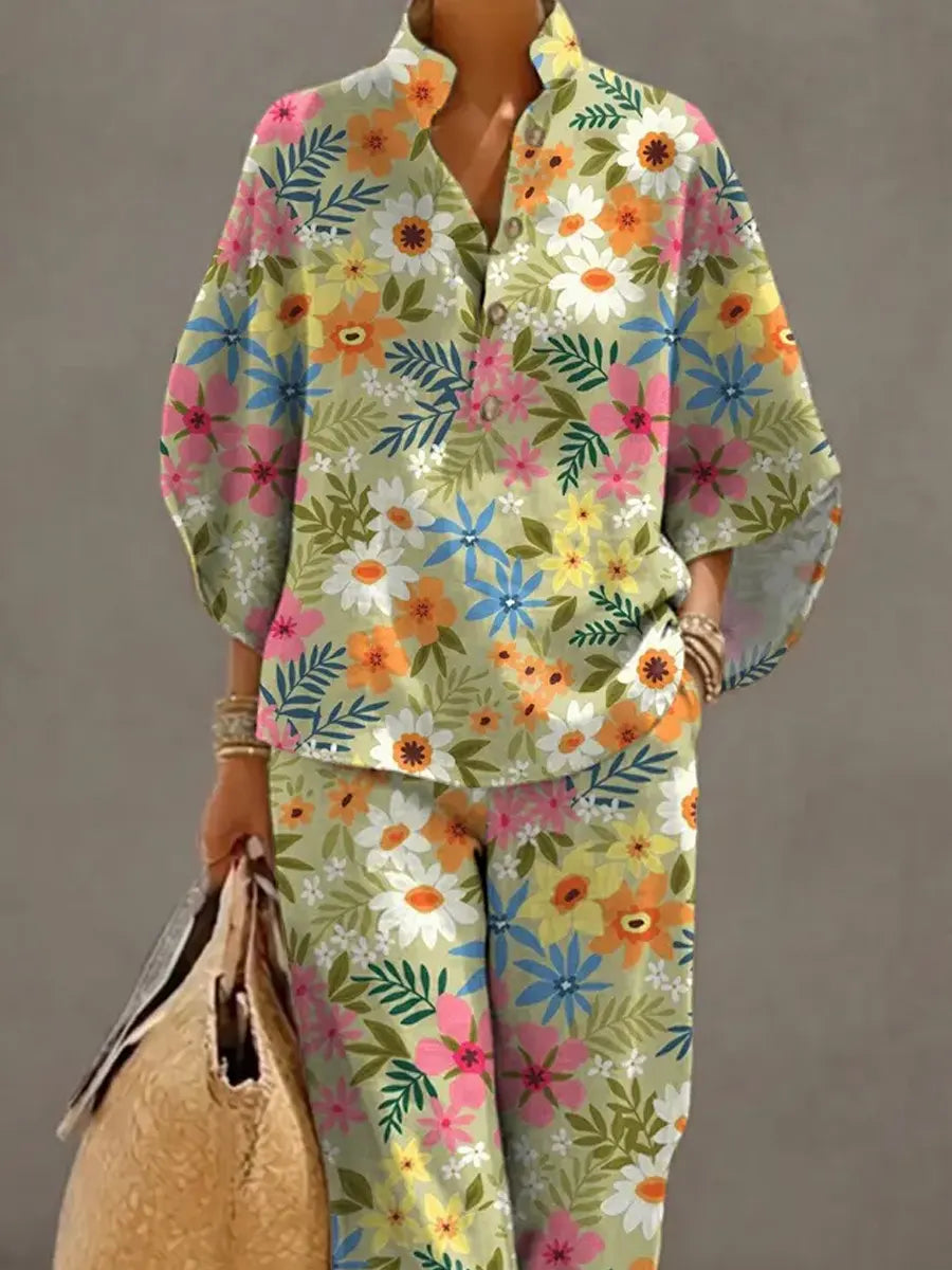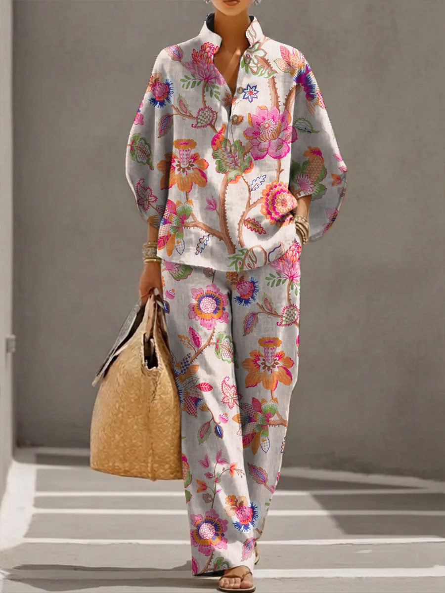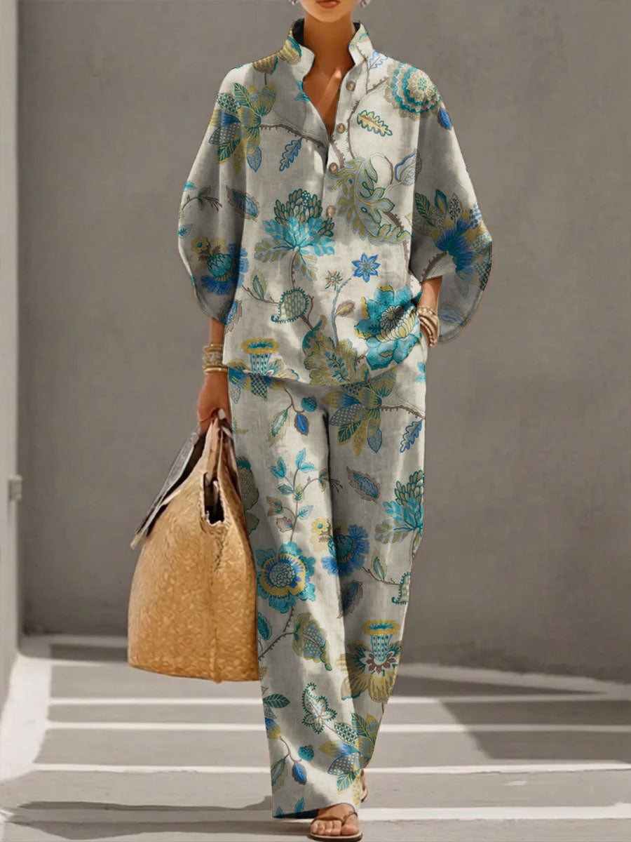 Women's Vintage Flowers Art Print Cotton And Linen Set