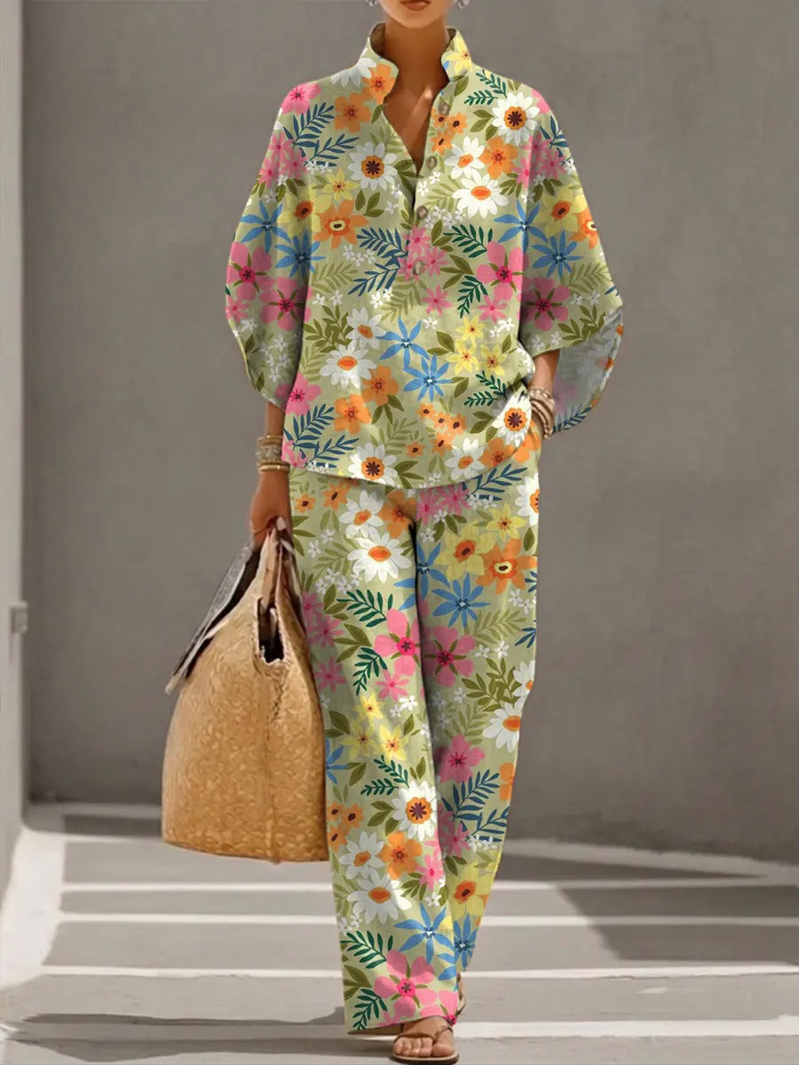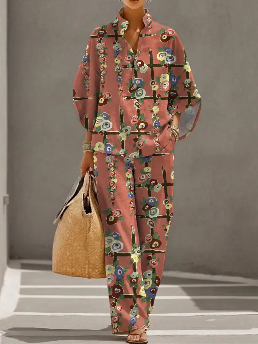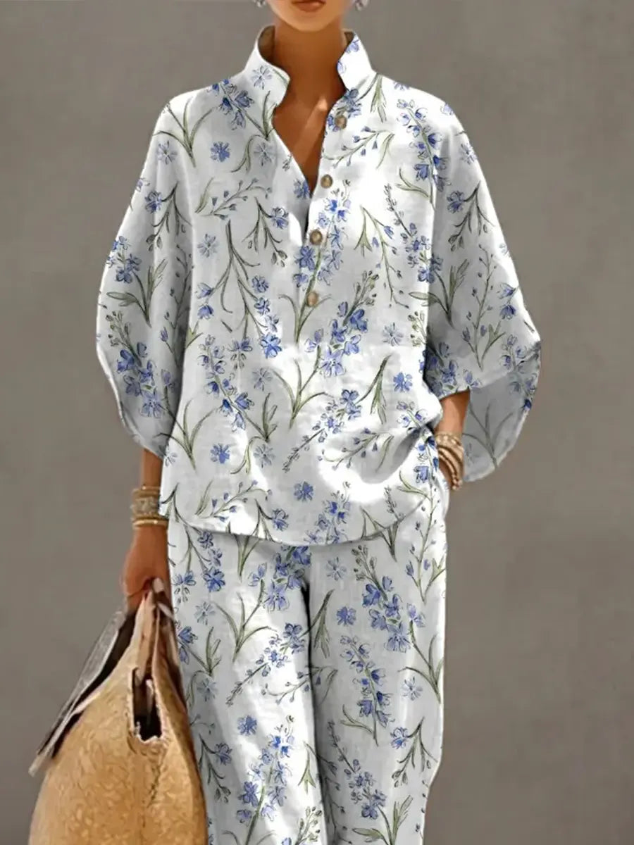 Women's Vintage Flowers Art Print Cotton And Linen Set