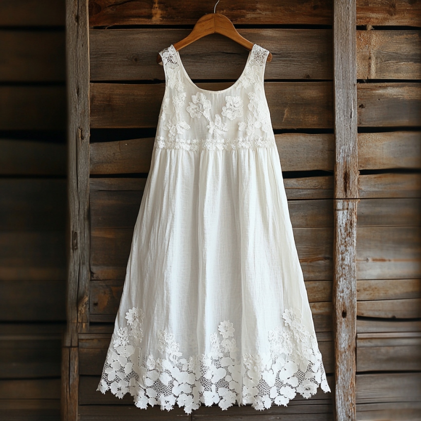 Vintage Floral Lace Art Linen Tank Dress