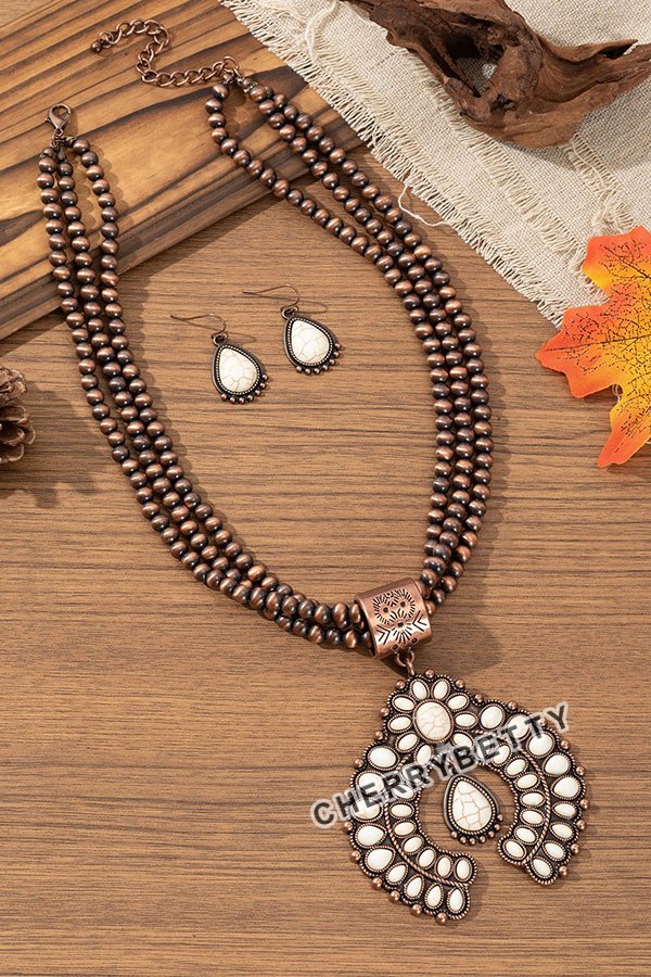 Western Layered Necklace And Earrings Set