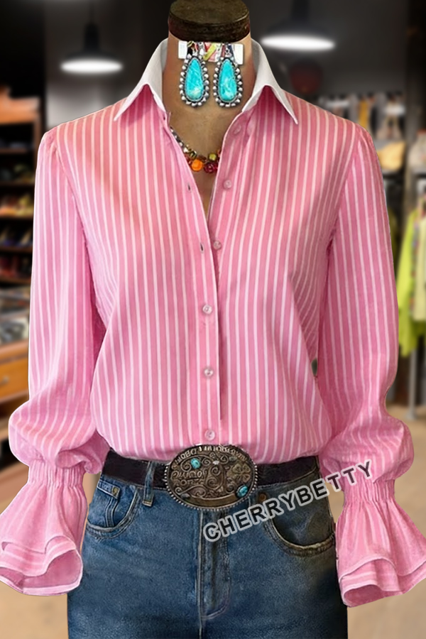 Casual Striped Flared Cuffs Blouse