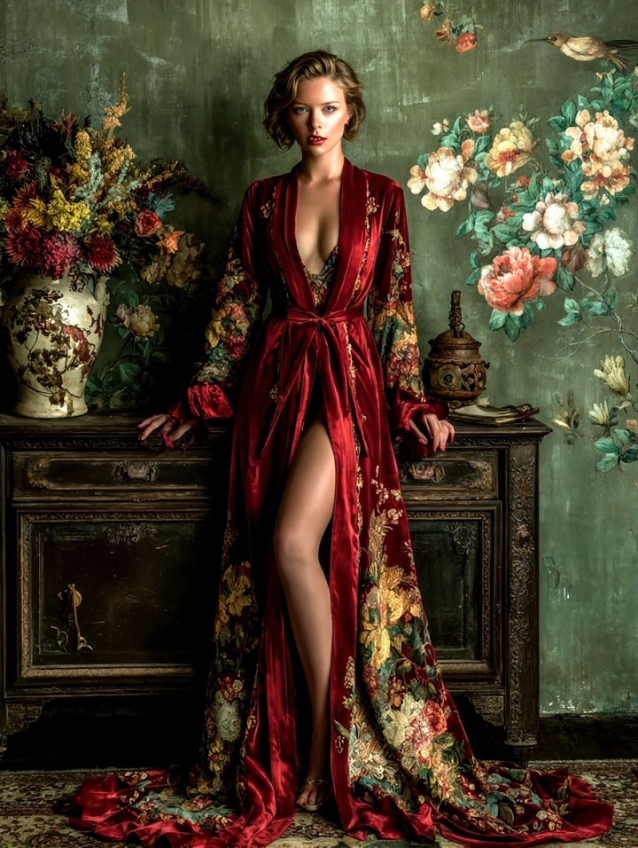 Women's Vintage Gorgeous Slim-Fit Pink Velvet Robe (belt Included)